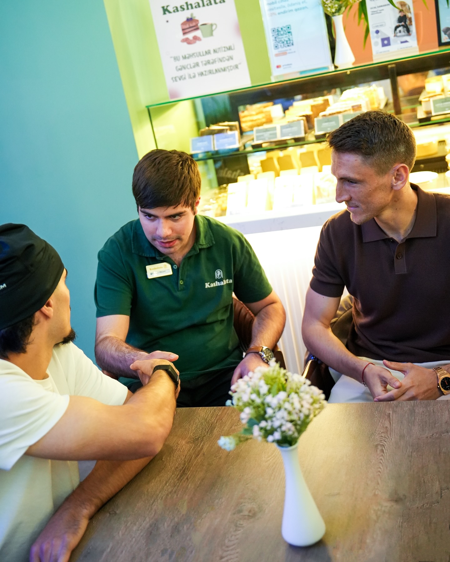 "Kashalata Cafe"də çalışan gənclərin fəaliyyəti ilə tanış olub onlarla ünsiyyət quran komandanın üzvləri onlara xatirə hədiyyələri təqdim ediblər.