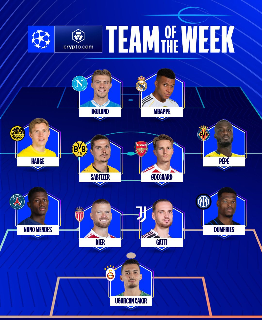 Müdafiəçilər: Nunu Mendez (PSJ"), Dayer ("Monako"), Qatti ("Yuventus"), Dyumfris (“İnter”)